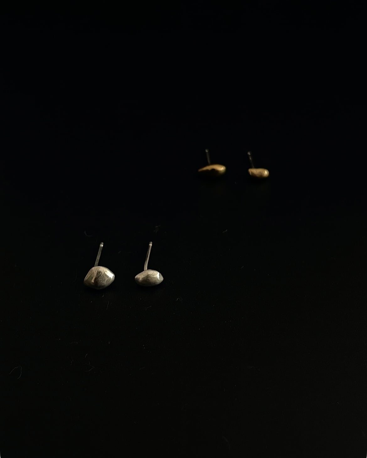 MIZU ringシリーズのpierceタイプ。肌に落ちたしずくのような、ぷっくりと潤みのある、いびつなニュアンス。一つ一つ個体差があり、それも一点ものの個性となるデザインです。