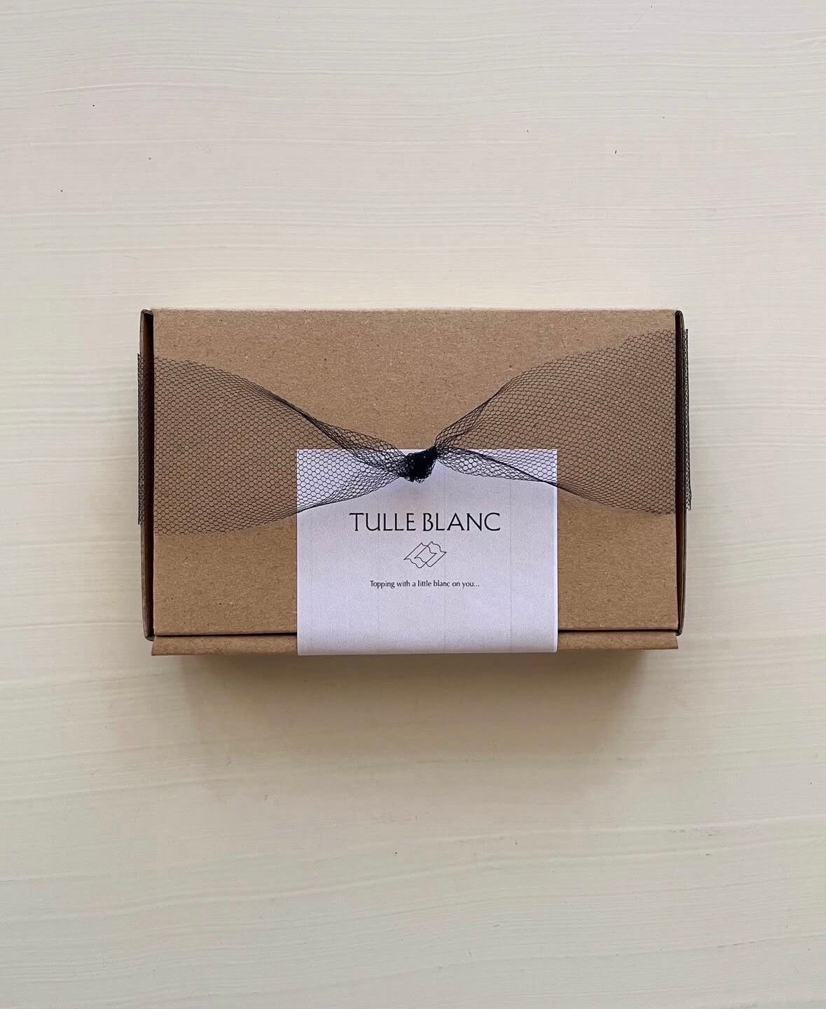 アジャスターの先端にはTULLE BLANCのアイコンでもあるfabricモチーフのチャームを。