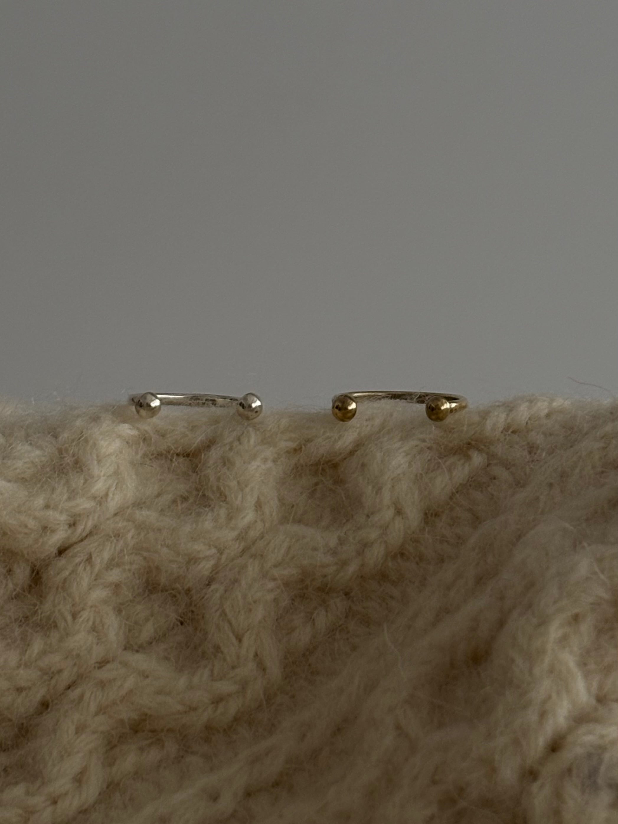 小粒モチーフでMIZU ringよりも軽やかに着用できるringです。指の間から覗くdotが愛らしくもあり抜け感もあり。