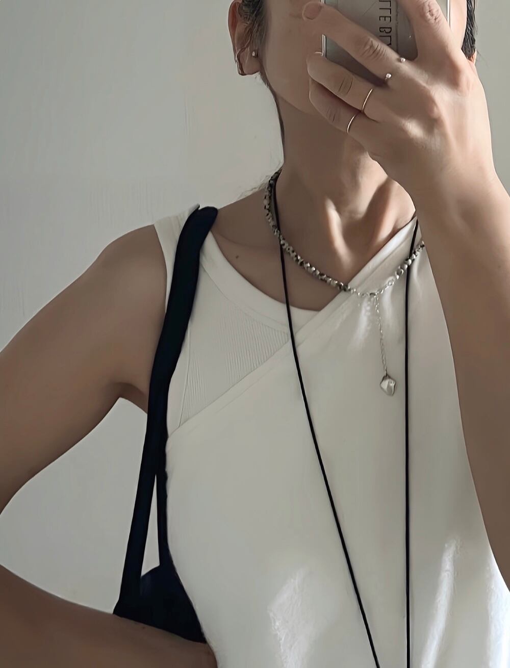 チャーム部分をあえてフロントに持ってきてラリエット風に、またはサイドにずらしても可愛いです。