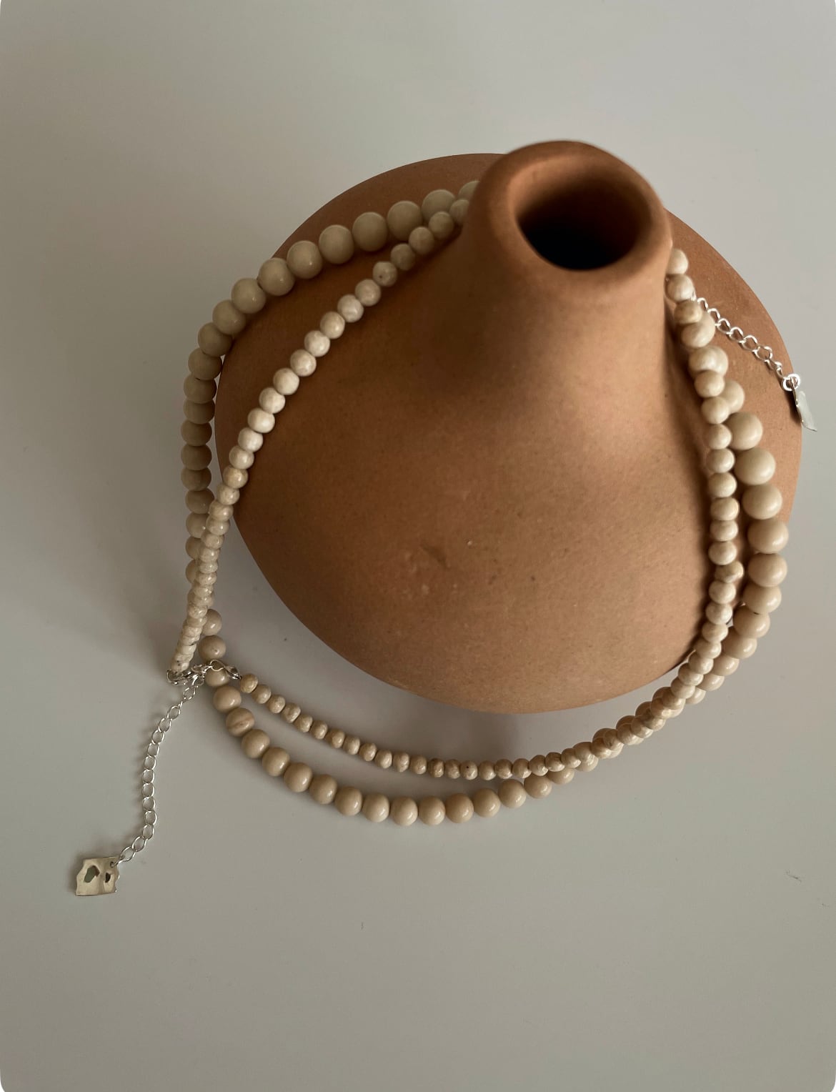 アイボリーにベージュのマーブル模様が上品な雰囲気のriver stone。リラックス効果があり、緊張やストレスを和らげてくれるといわれています。