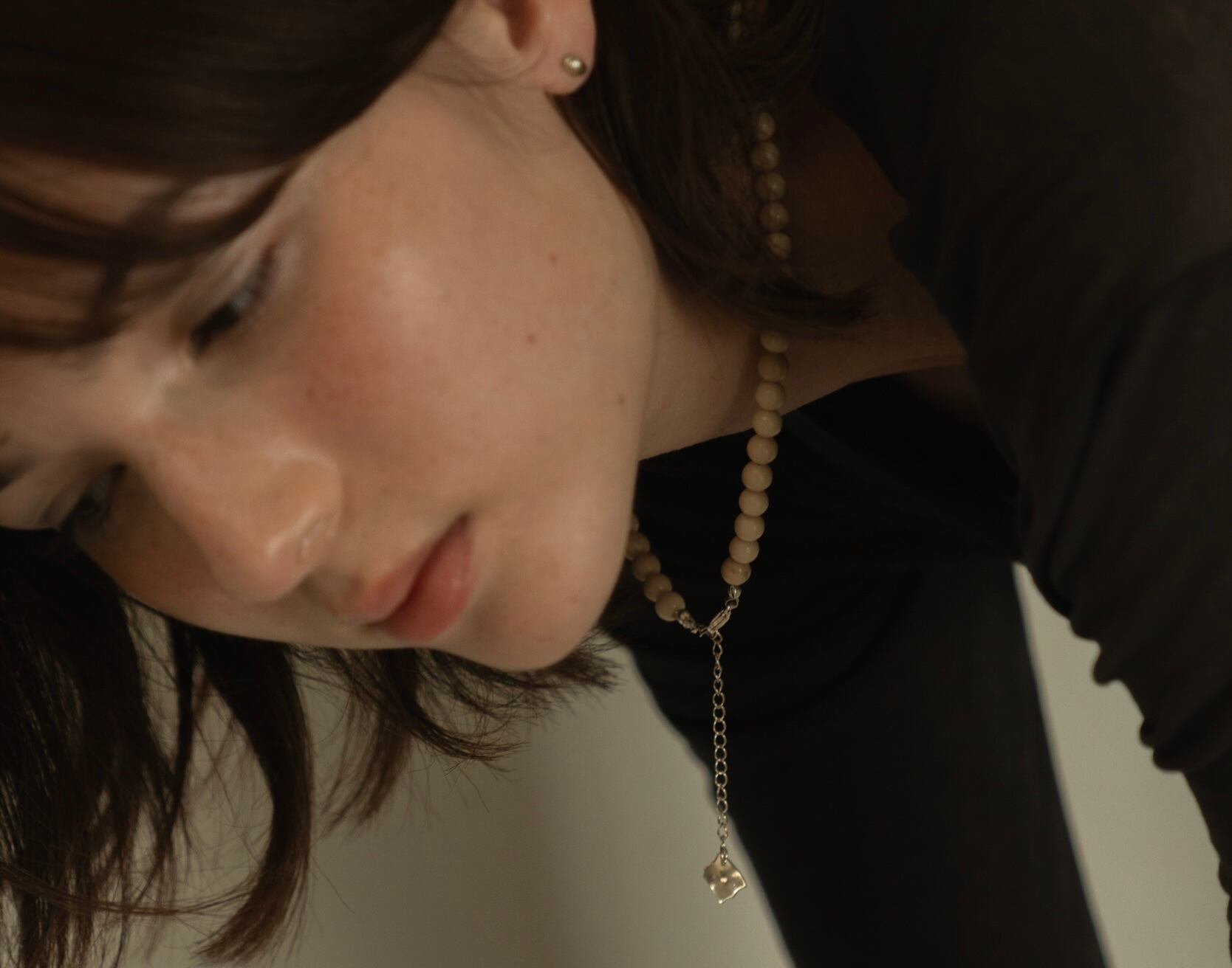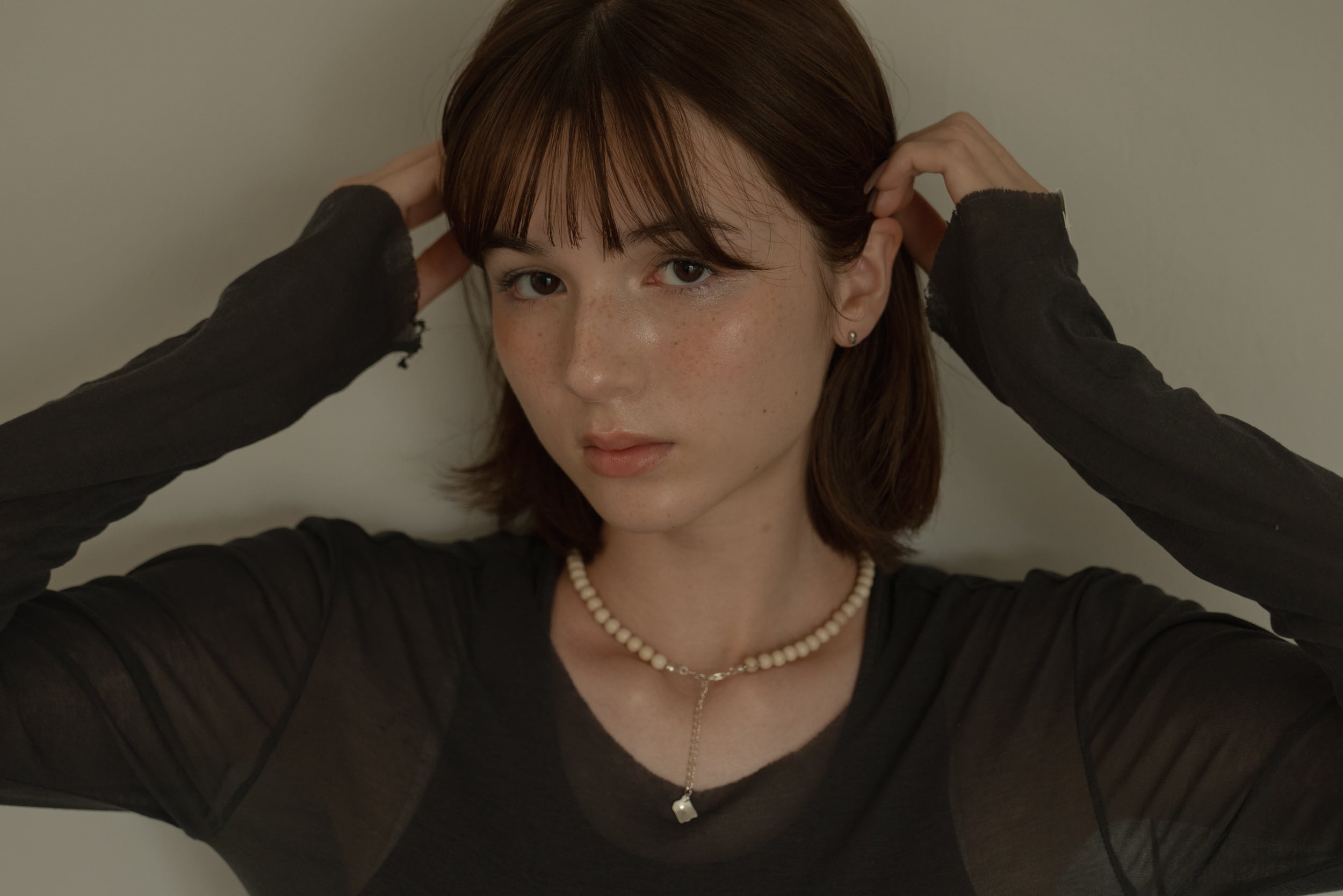 チャーム部分をあえてフロントに持ってきてラリエット風に、またはサイドにずらしても可愛いです。
