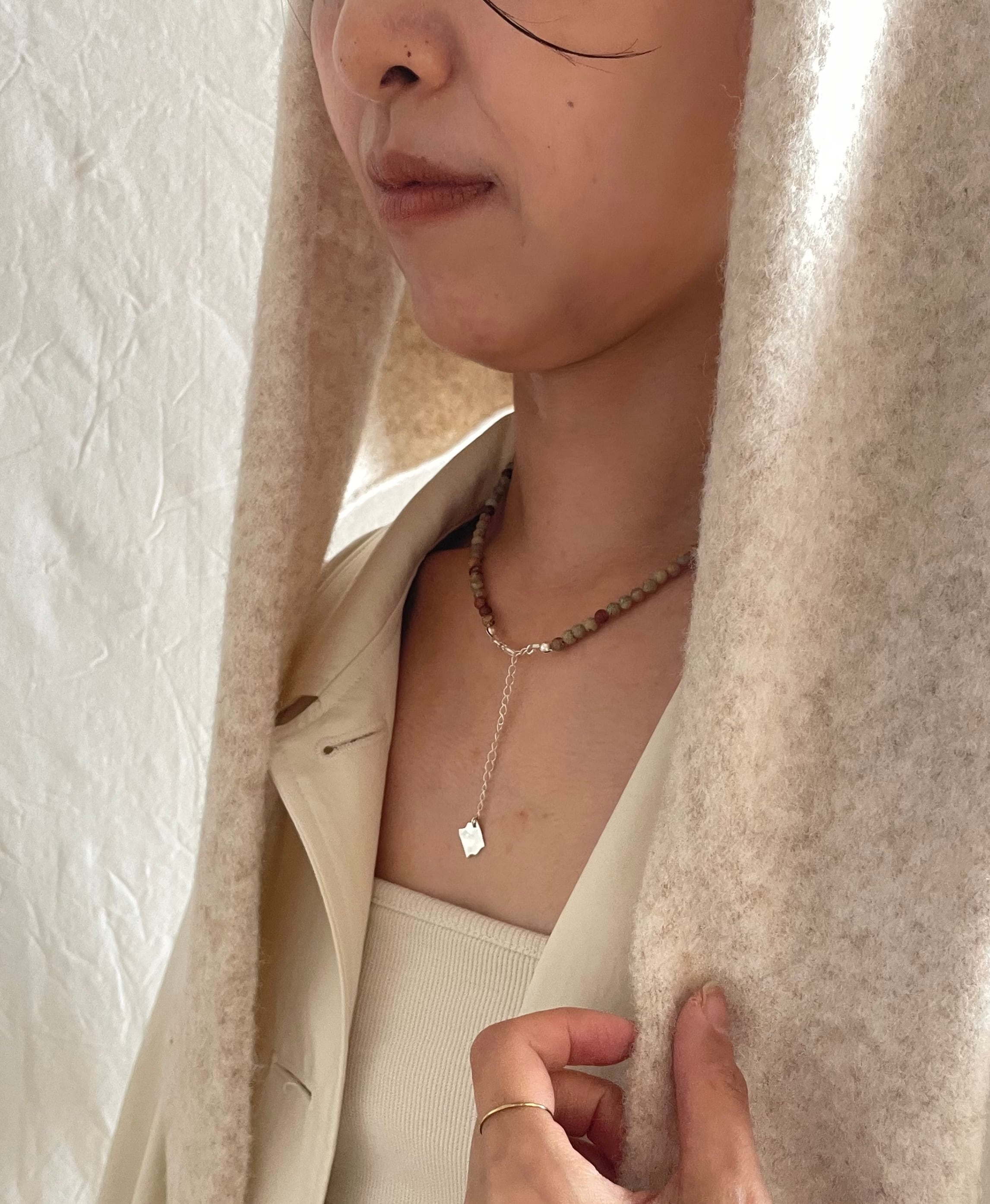 Material : 天然石、silver925(チェーン、アジャスター)、silver950(チャーム)、ナイロンコートワイヤー