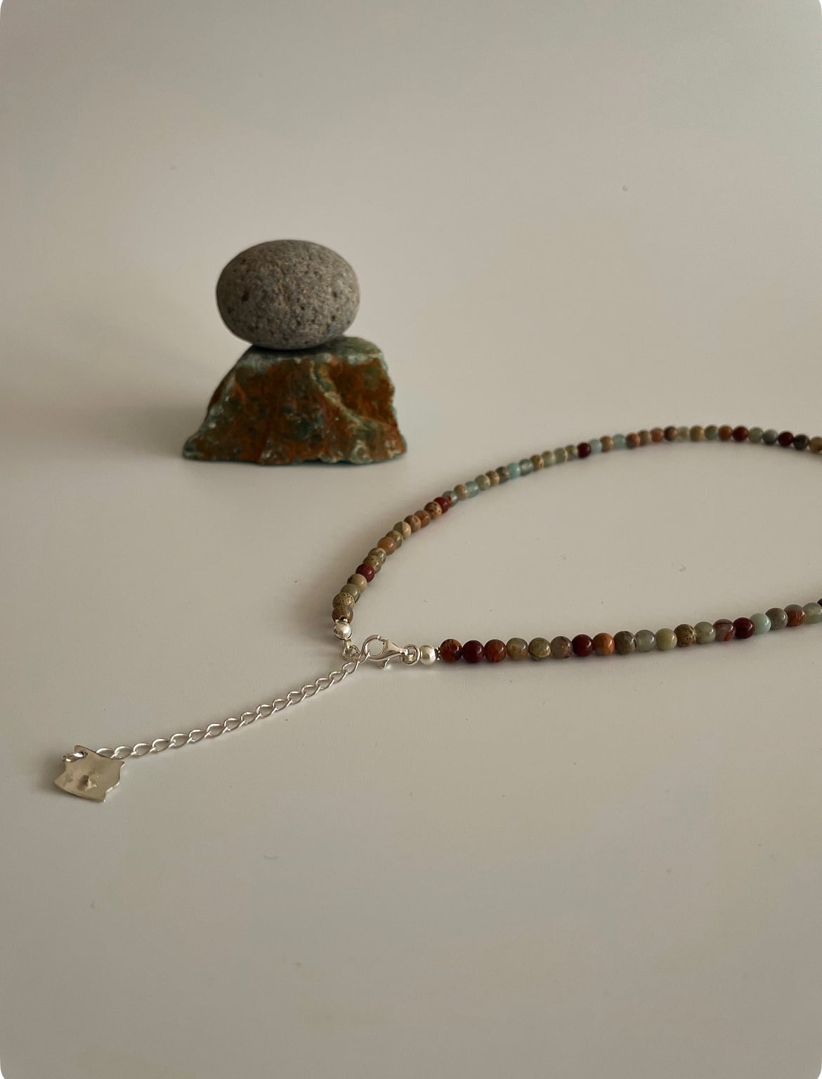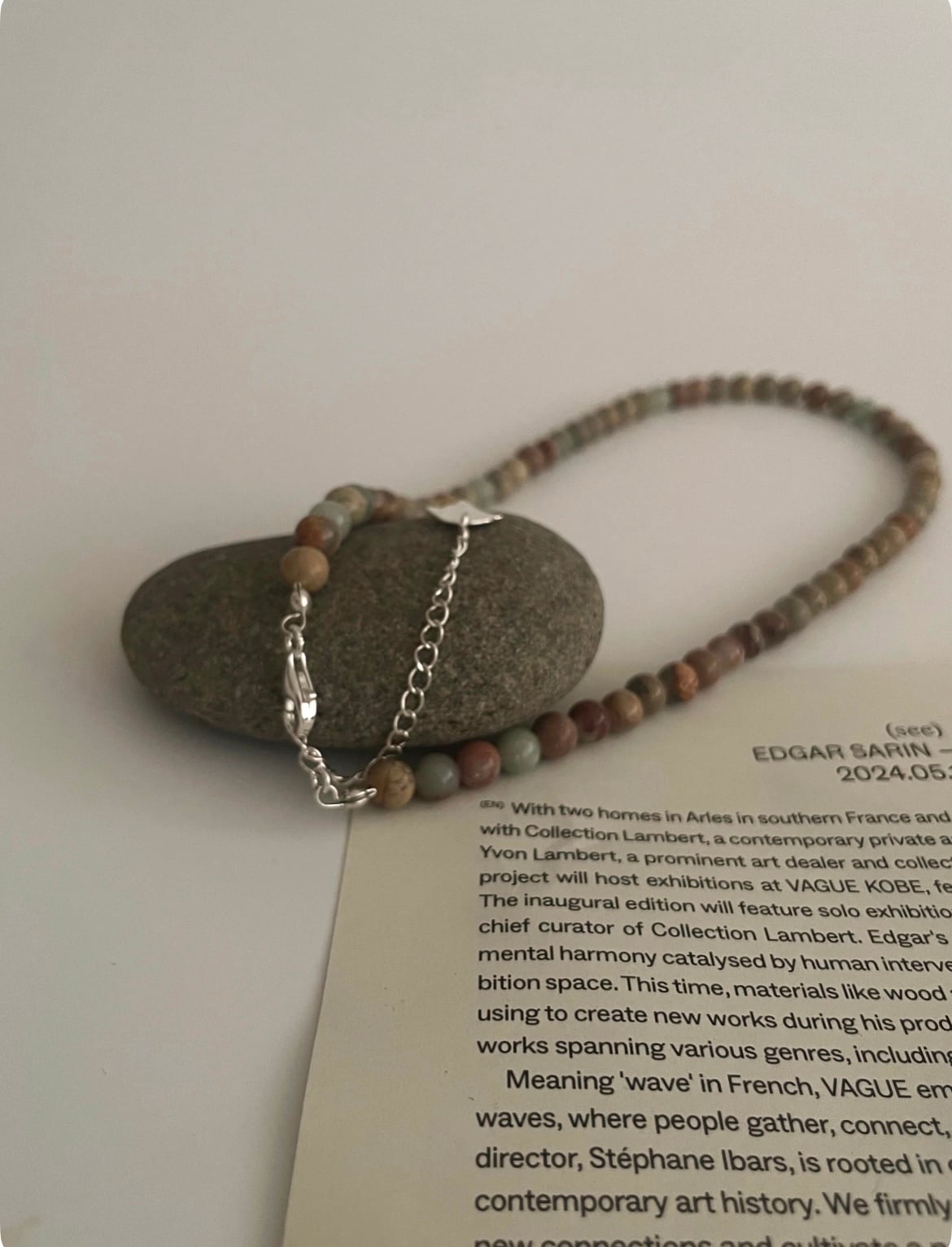 Material : 天然石、silver925(チェーン、アジャスター)、silver950(チャーム)、ナイロンコートワイヤー
