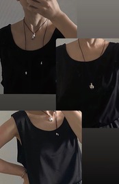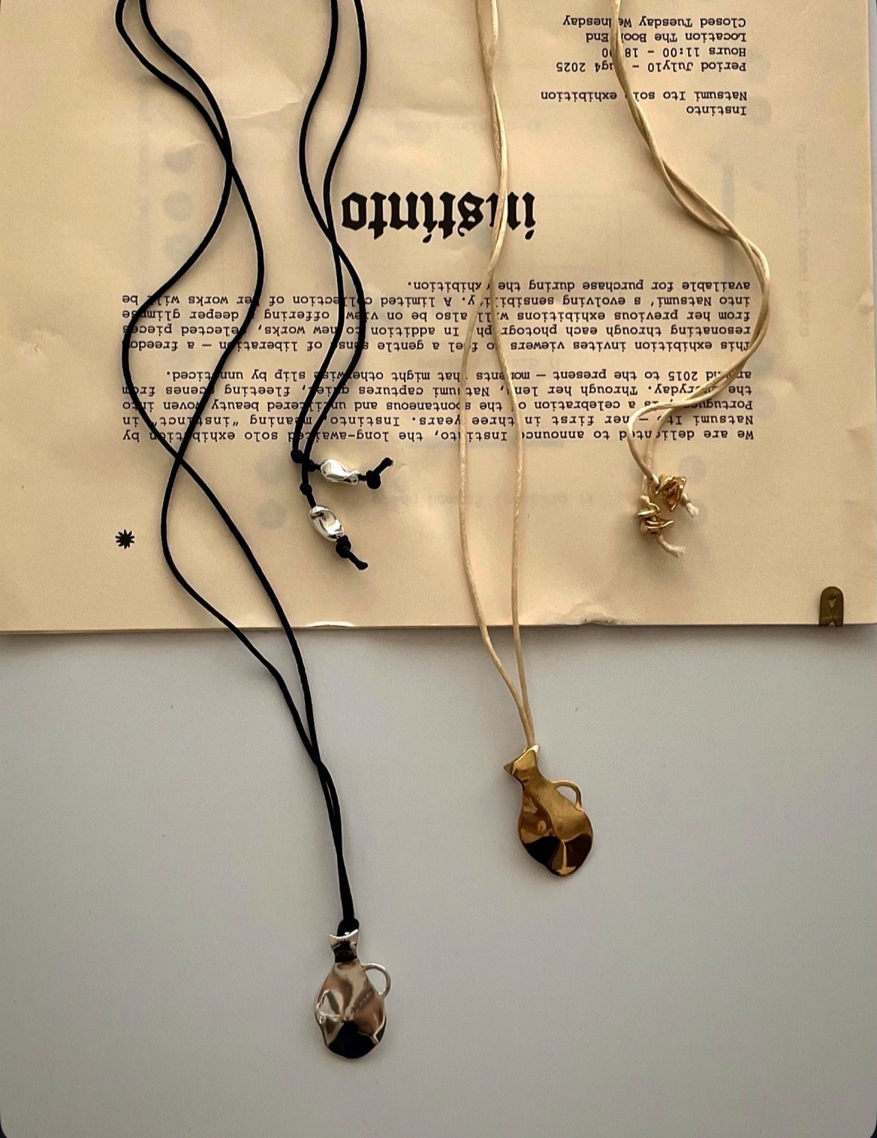 コードは長さ調整可能なので、後ろに垂らしたり前に結んだり。取り外しも可能なので、コードだけでアレンジしたり、お手持ちのチェーンにチャームを付け替えたりして、無限にアレンジできるコードネックレスです。