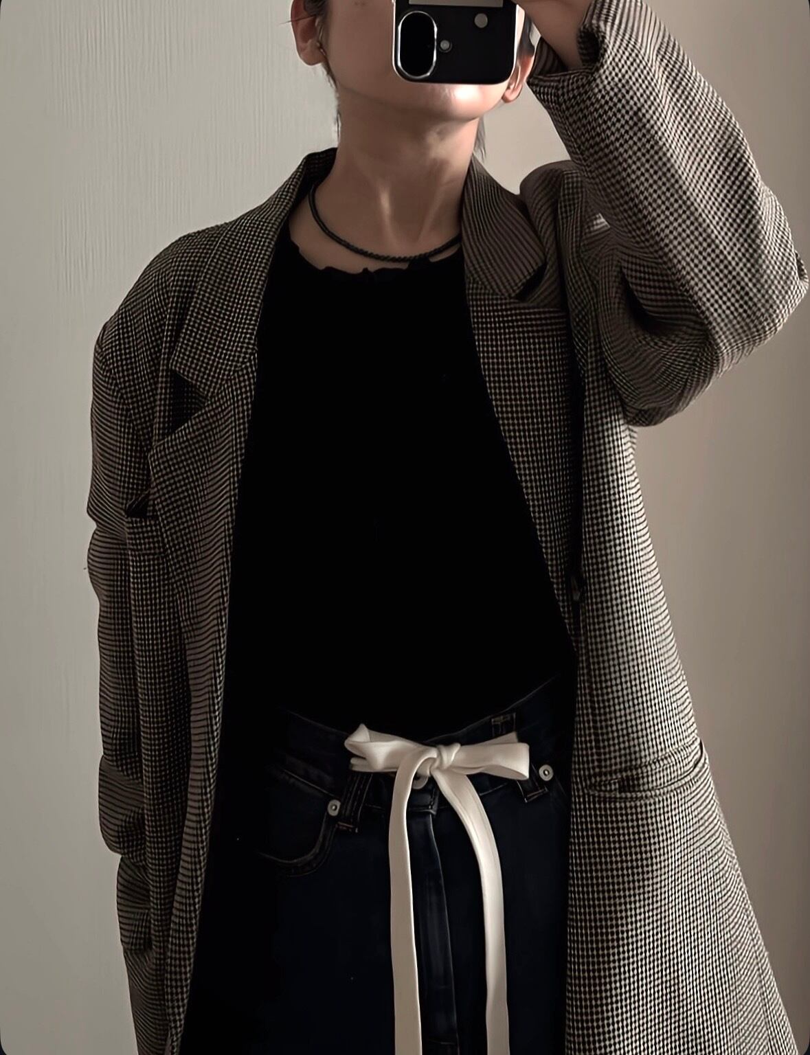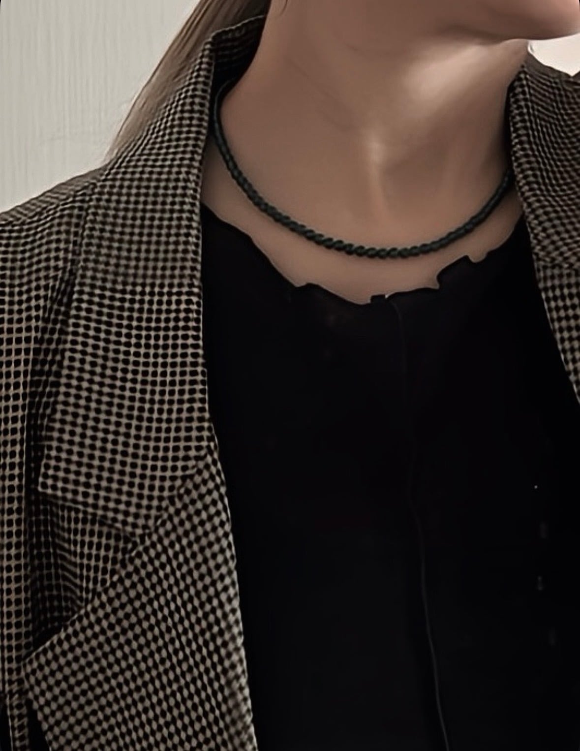 アジャスターの先端には、TULLE BLANCのアイコンでもあるfabricモチーフのチャームを添えました。一からデザインし、彫金でお作りした完全オリジナルのsilver950チャーム。わずかな凹凸を加え、風になびく布のようなニュアンスに仕上げています。