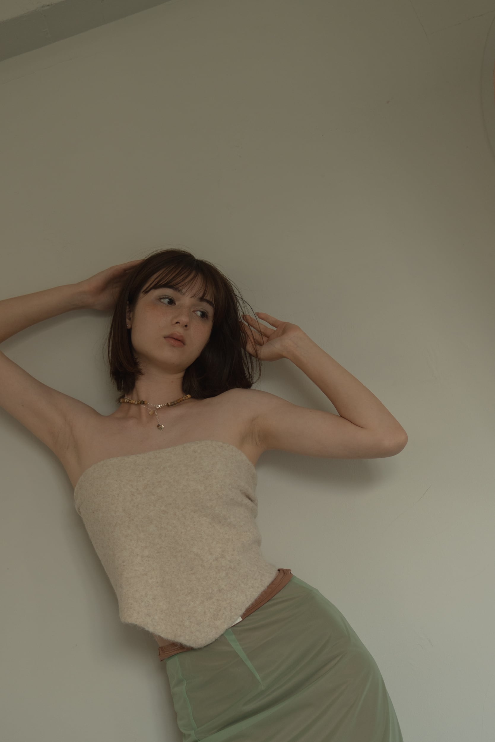 アジャスターの先端には、TULLE BLANCのアイコンでもあるfabricモチーフのチャームを。一からデザインし、彫金でお作りした完全オリジナルのsilver950チャームです。わずかな凹凸を加え、風になびく布のようなニュアンスに仕上げました。