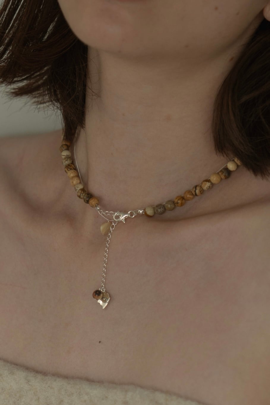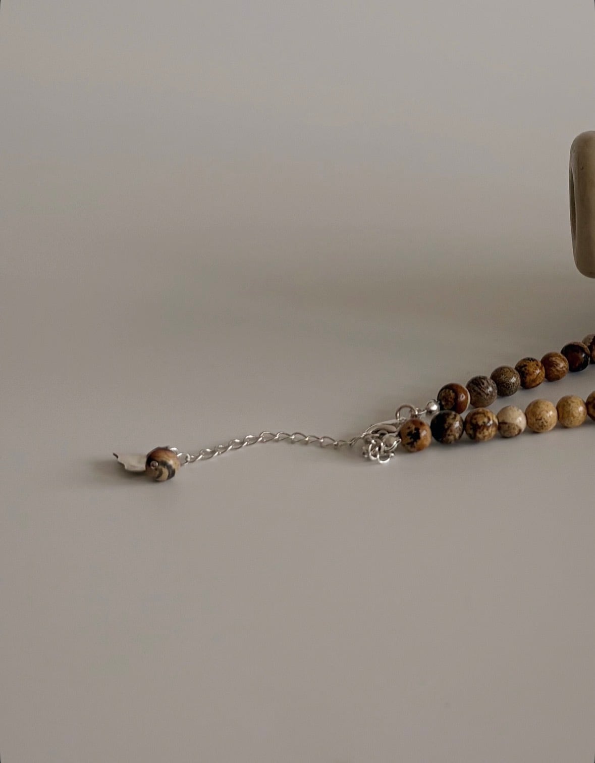 ピクチャージャスパーの天然石necklace。存在感のある約6mmタイプです。