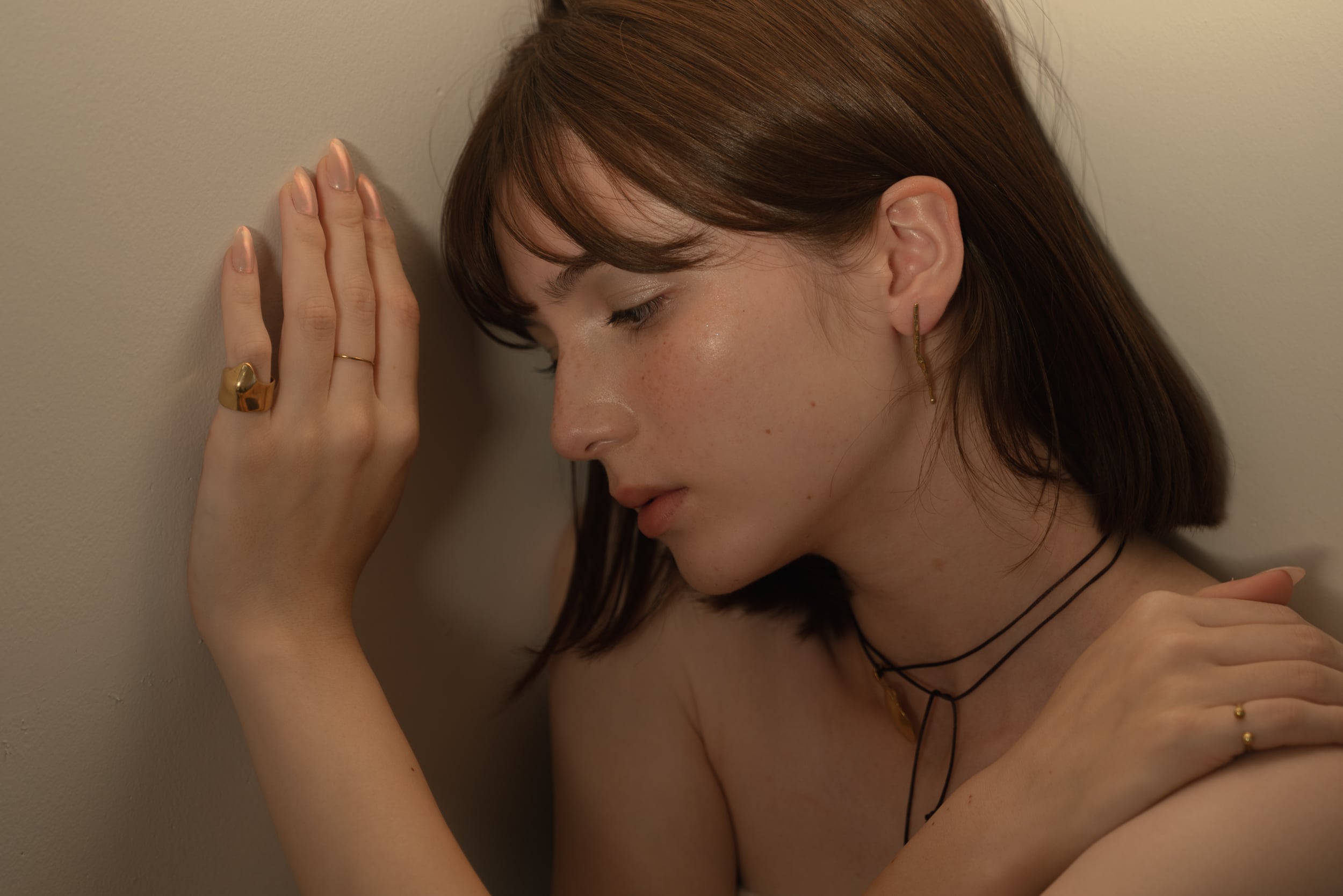 窓をつたう水滴が美しく、その流れる先まで思わず目で追ってしまう。そんな一瞬の景色を封じ込めました。MIZUの派生から再構築したデザインは、より躍動感や流動感を表現するため、実際にsilverや真鍮を溶かし、その時々に生まれる形を生かして製作しております。ところどころに黒ずみを残し、真鍮ならではのアンティークな表情をお楽しみいただけます。