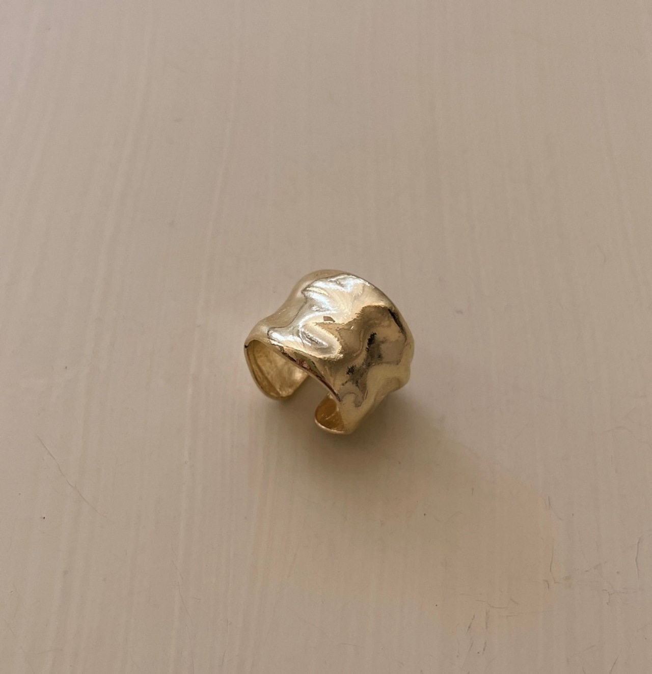 切りかぶのような太めのイヤカフ。