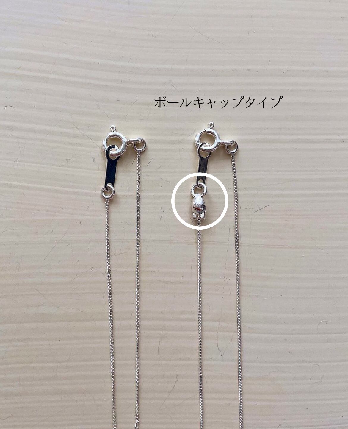 どちらも留め具の仕様がボールチップタイプ